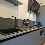 A fully-fitted kitchen is provided at Design Ac Wifi Patio Esterno 5 Min Dal Mare Apartment The accommodation opens onto a terrace.